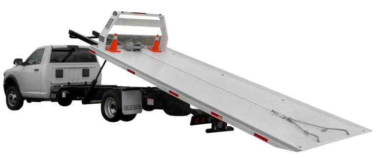 Estas grúas cuenta con plataforma en la parte trasera del vehículo. Esta plataforma se inclina para crear un rampa y recoger el coche y después, elevarlo con un sistema hidráulico.